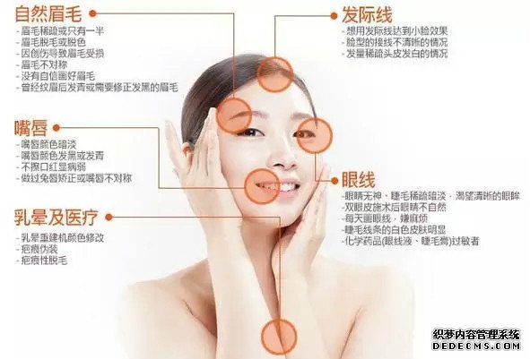 此技术全面结合了多种优势:受众范围广泛、美丽效果立竿见影;与普通化妆容易更换等优势。避免了每天都要花费几个小时化妆、卸妆的繁琐过程,是真正的省时、省力、健康、时尚的领先国际的美丽理念和化妆技术。